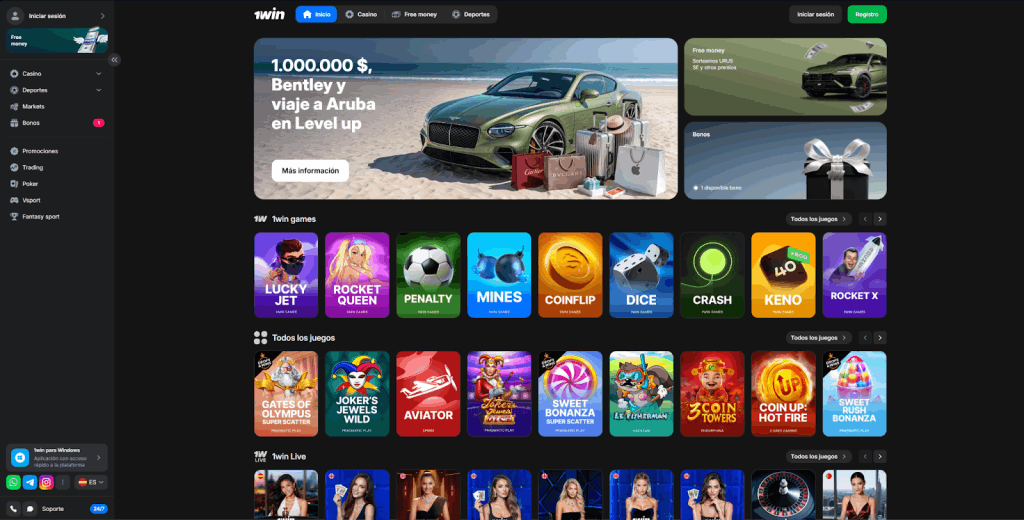 1Win cubre Argentina junto a toda la región latinoamericana y tiene app disponible para iOS, Android y escritorio Windows. El catálogo incluye más de 150 proveedores y una sección exclusiva de juegos propios: Lucky Jet, Rocket Queen, Mines, Coinflip y Crash, entre otros. Para quienes buscan casino online ganar dinero real con variedad de formatos, la oferta es amplia.